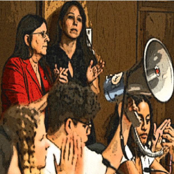 Despite the fact that he believed the students were exploited, he prevented charges being brought against the students “exploiters.” School Board member Michael Hicks due to his concern for the students and role of adults in their exploitation had called for an investigation of the protest organizers. Pedicone demanded that charges not be pursued. Judy Burns was an instigator of the student takeover on April 26. Her role in the protest was revealed on her Facebook page: