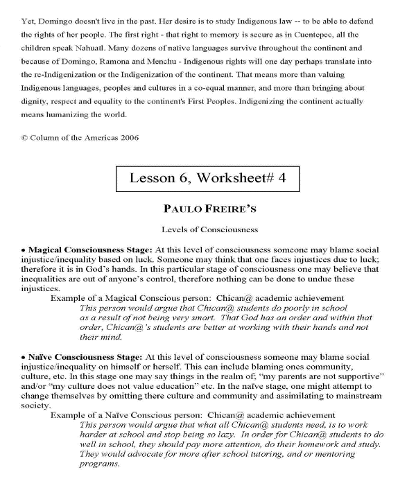 The materials below are part of TUSD’s Mexican American Studies curriculum. The lesson plan is entitled, Cortez to Bush: 500 Years of Internalized Opression and Rehumanization.