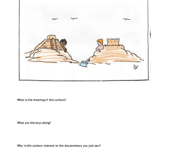 The instructions to the teacher read, “This past year, 2005-2006, was the year of the Minute Men, immigration reforms, walk outs and lots of demonstrations in support of immigrants, reaffirming that they are not alone in their struggle for freedom.”