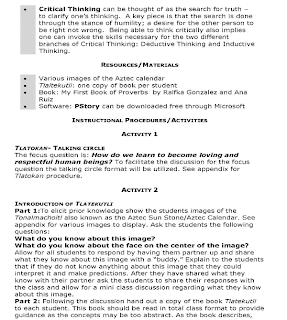 Nahui Ollin: Bringing Harmony and Balance Through an Understanding of Tezcatlipoca is a lesson plan offered through TUSD’s Mexican American Studies Department. The lessons underlying goal “guiding this unit is to begin to transform the negative impact of colonization and the tragic effects it has had on indigenous people of this continent for the past five hundred years.”