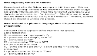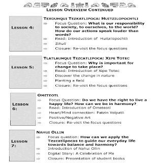 The lesson warns instructors to, “not allow the Nahuatl concepts to intimidate you. This is a beautiful “teaching” moment as the students can witness your struggle and growth with the content. Thus making yourself vulnerable to your students; more human, not… “all knowing”… Education is an arduous task and there is a beautiful quality in this endeavor. Therefore, students should be allowed to witness this process.”