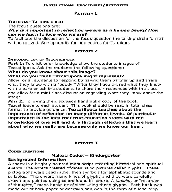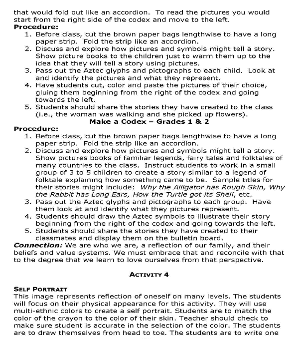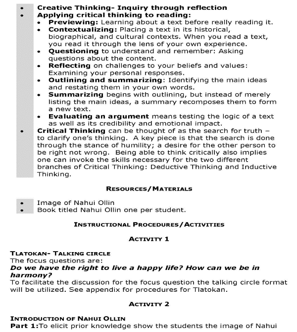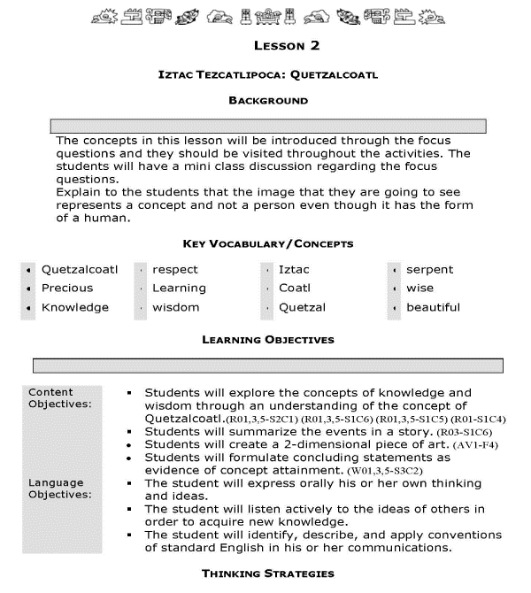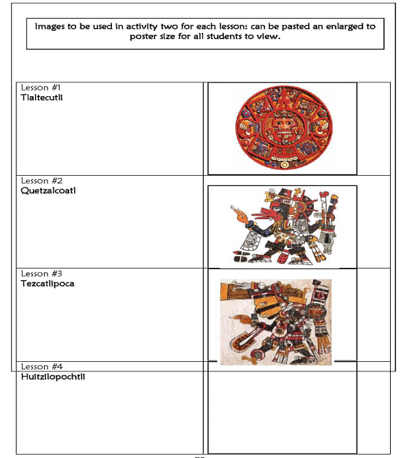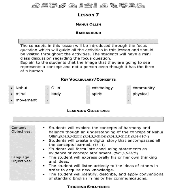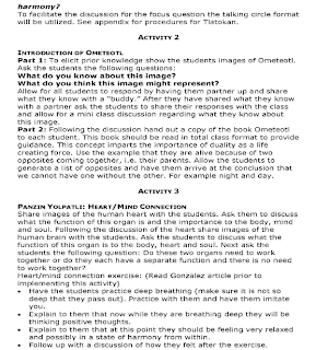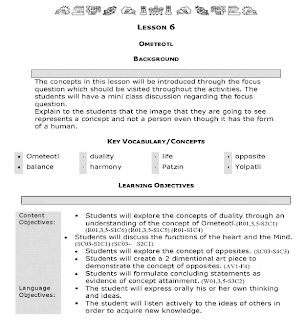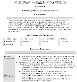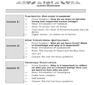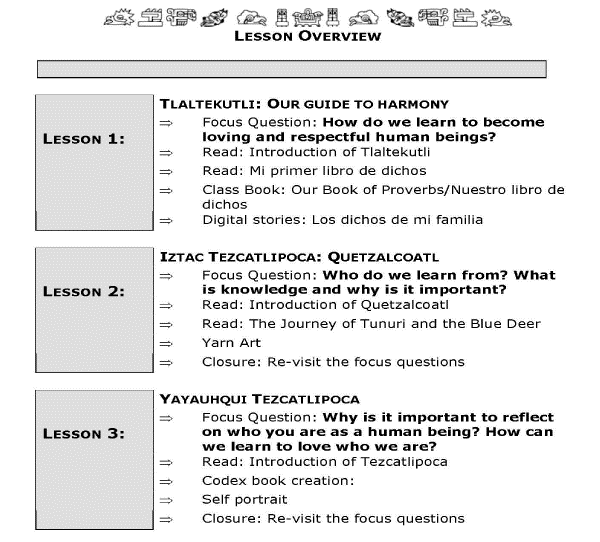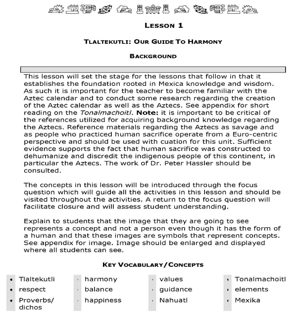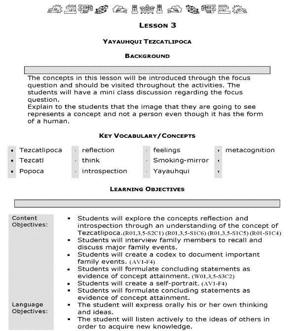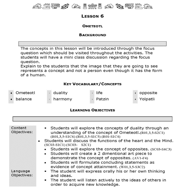 The lesson warns instructors to, “not allow the Nahuatl concepts to intimidate you. This is a beautiful “teaching” moment as the students can witness your struggle and growth with the content. Thus making yourself vulnerable to your students; more human, not… “all knowing”… Education is an arduous task and there is a beautiful quality in this endeavor. Therefore, students should be allowed to witness this process.”