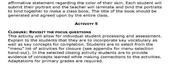 Another long time educator said of the materials in this lesson plan, “The lessons themselves all look good…until you consider the content itself, some of which does not belong in a public school and a lot of which is not appropriate for young children who do not have the skills to (a) separate fact from fiction and (B) understand they are being indoctrinated.”