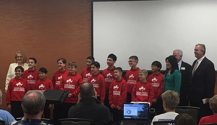 Yee addressed the enthusiastic Green Valley crowd following a phenomenal presentation by the Tucson Boys Chorus directed by Julian Ackerley. The Chorus is making the rounds in preparation for a performance at the White House.