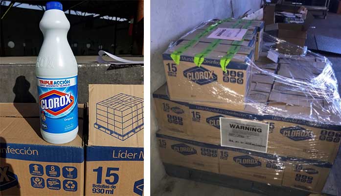 NOGALES, Ariz. – In April 2020, special agents in Nogales with Homeland Security Investigations (HSI) and Customs and Border Protection (CBP) officers assigned to the Trade Enforcement Coordination Center (TECC) made multiple significant seizures of adulterated Clorox bleach shipments for violations of federal law relating to consumer product tampering.