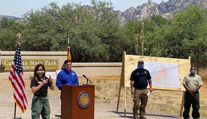 “We will bring whatever resources we need to the Tucson area to protect the people and the property here,” vowed Ducey, “but this fire is going to be put out by the one resource we need in addition to the brave men and women that you see fighting this fire; that is Mother Nature.”