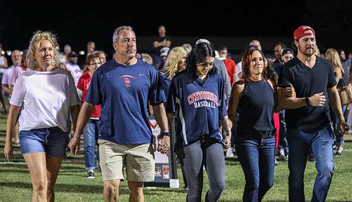 PEORIA – It was a moment of celebration but also melancholy as Doug and Shannon Hoffpauir led a crowd to the middle of the Centennial High School football field. They passed by the No. 31, now painted in the team’s red and white above the 31-yard line, that will forever represent everything they believed their son Zach valued.
