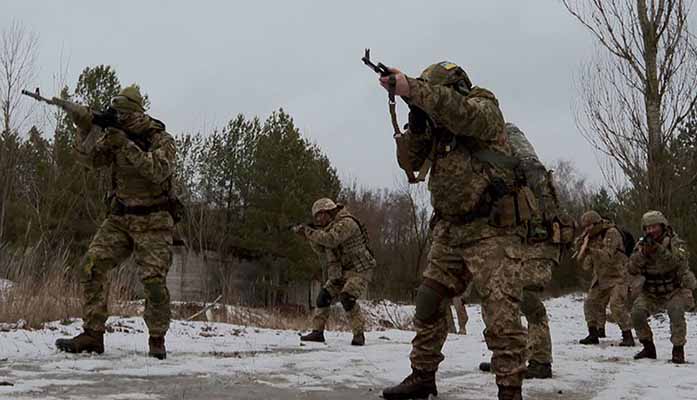 Ukrainian troops train in this undated photo. More than 150,000 Russian troops were massed on the Russian border this week, with the White House saying an invasion could come within days. (Photo courtesy Cronkite News)