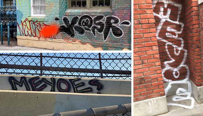 Since 2020, the Phoenix Police Department has been investigating reports of graffiti tagging over several neighborhoods including the downtown and Roosevelt Row areas with the moniker “MEYOE.” The city of Phoenix Neighborhood Services Department responded and facilitated the cleaning of these vandalized areas for the past two years.