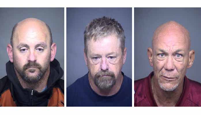 Three men were arrested after Mesa Police Department officers caught them in the act of stealing an ATM machine. The three men were identified as 41-year-old Patrick Intintoli, 57-year-old Mark Bryant, and 53-year-old Brian Groce.