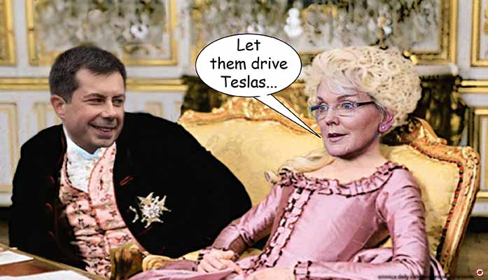 A billboard reading “ELITE PETE SAYS, ‘LET THEM DRIVE ELECTRIC CARS’” was put up in the heart of New York City by the small business advocacy group Job Creators Network (JCN). The display comes following the Transportation Secretary’s comments suggesting that high gas prices would drive Americans to buy costly electric vehicles in a hearing on Tuesday.
