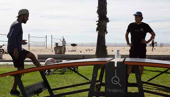 Teqball can be played inside or outdoors, whether it’s in the confines of a soccer venue or overlooking the beach in Santa Monica, where tables are set up near the bike path, a popular destination for locals and tourists alike.