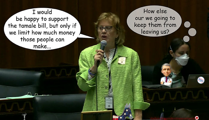 Want to know why my local State Rep @JudyForAZ voted against the #FreeTheTamales Bill #HB2509?It’s because Judy believes that “there should absolutely be a cap on how much people can make”