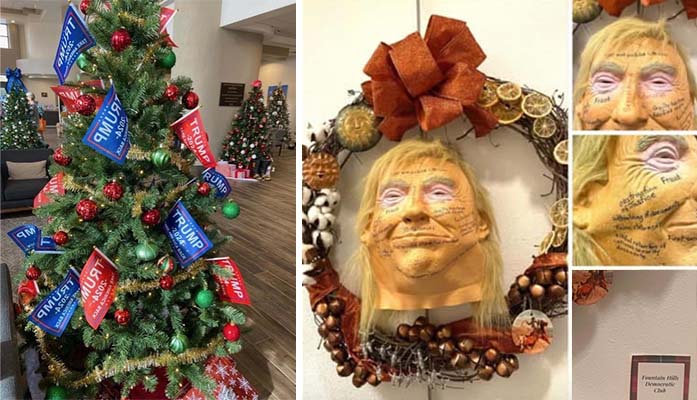 Fountain Hills Democrats were so outraged over the inclusion of a Christmas tree decorated with Trump 2024 flags at a community center that they put a severed head resembling President-elect Donald Trump on display.