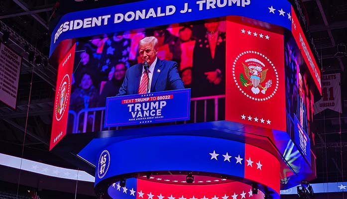 The architect of Trump’s hardline immigration policies during his first term, Stephen Miller, warmed up the rally crowd, promising a new “golden age” for America starting when Trump takes the oath of office for a second time.