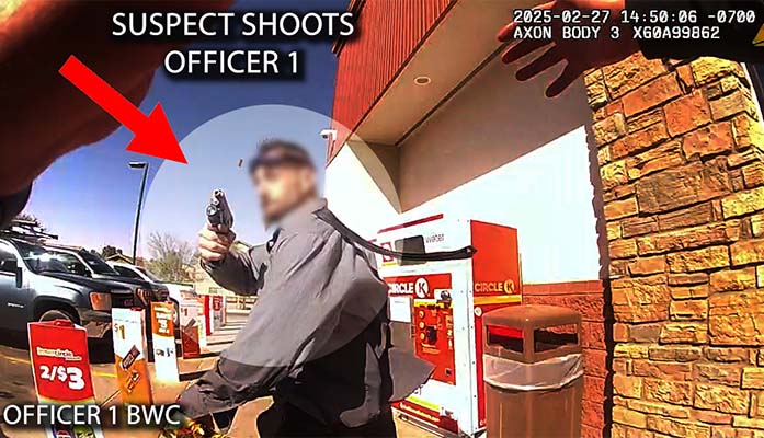 A second officer returned fire while Prock continued running and shooting at both officers.
