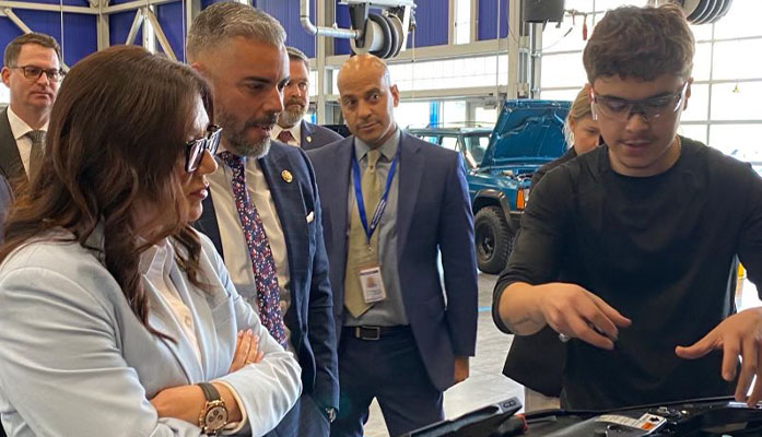 At Ciscomani’s alma mater, the congressman and Secretary Chavez-DeRemer got a first-hand glimpse of state-of-the-art programs that train students in automotive technology, advanced manufacturing and construction trades.