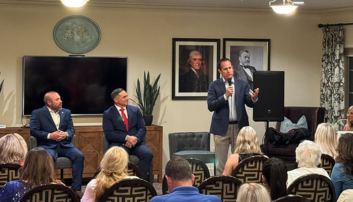 Jay Feely, Travis Grantham, and Daniel Keenan each spoke briefly to introduce themselves then took turns answering questions from the event moderator and, to no one’s surprise, they largely agreed on the issues, competing largely to see who had the best claim to the MAGA and conservative lanes in their 2026 primary election.