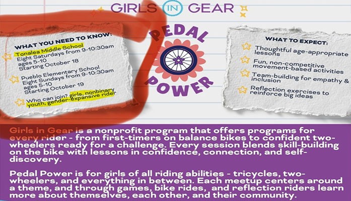 Horne is referring to a program featured in an article in AZFree News, about Scottsdale Unified School District’s (SUSD) promotion of “a biking event for “girls, nonbinary youth, and gender-expansive” children in family-facing communications.”