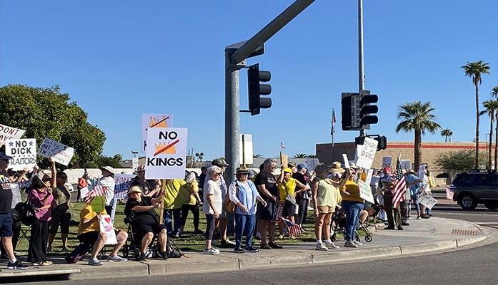 In Peoria, Arizona mostly senior citizens waved signs as part of the No Kings protest day.