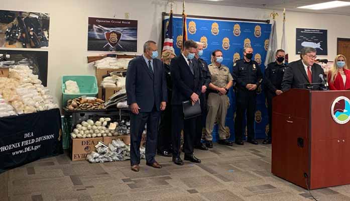 PHOENIX – On Thursday, Attorney General Bill Barr joined Drug Enforcement Administration Acting Administrator Timothy Shea to announce the results of Operation Crystal Shield. The operation was six-month-long effort targeting the command and control elements of Mexican cartels that operate major methamphetamine “transportation hubs” in the United States.