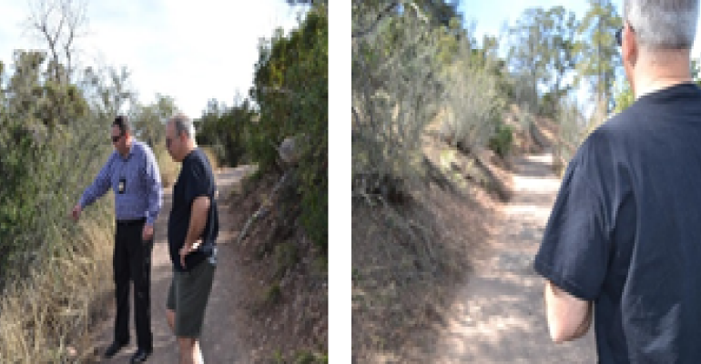 Detective Diskin discusses investigation with Sal Sposito brother of Cathy,who also surveys homicide scene
