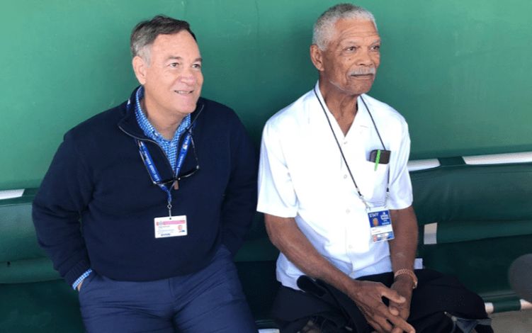 Felipe Alou, right, was convinced by author Peter Kerasotis to write a book about his life. Alou is a big reason so many Dominican players are in the majors. (Photo by Katie Woo/Cronkite News)