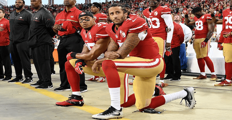 Colin Kaepernick (right) has remained a controversial figure after kneeling during the national anthem. His new deal with Nike has sparked debate again. (Photo by Thearon W. Henderson/Getty Images)