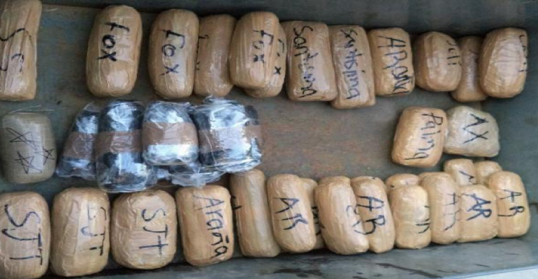 A combination of meth and heroin were removed from a smuggling vehicle, after a service canine team alerted to an area behind the front seat.