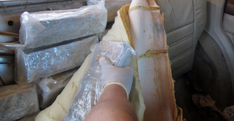 Officers discovered packages of marijuana behind the rear seat of a smuggling vehicle as well as within the spare tire