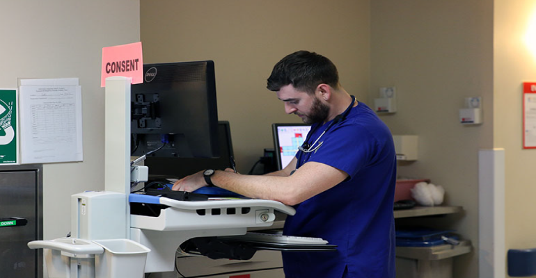 Christopher Saunders, a nursing senior from Chamberlain College of Nursing, is gaining experience at Maricopa Integrated Health System. (Photo by Courtney Kock/Cronkite News)